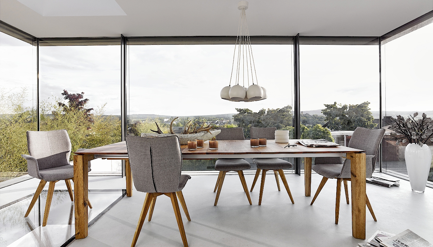Eßtisch mit Auszugmechanik, in verschiedenen Größen, elegante Massivholzplatte in Eiche, Nußbaum oder Buche