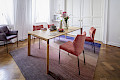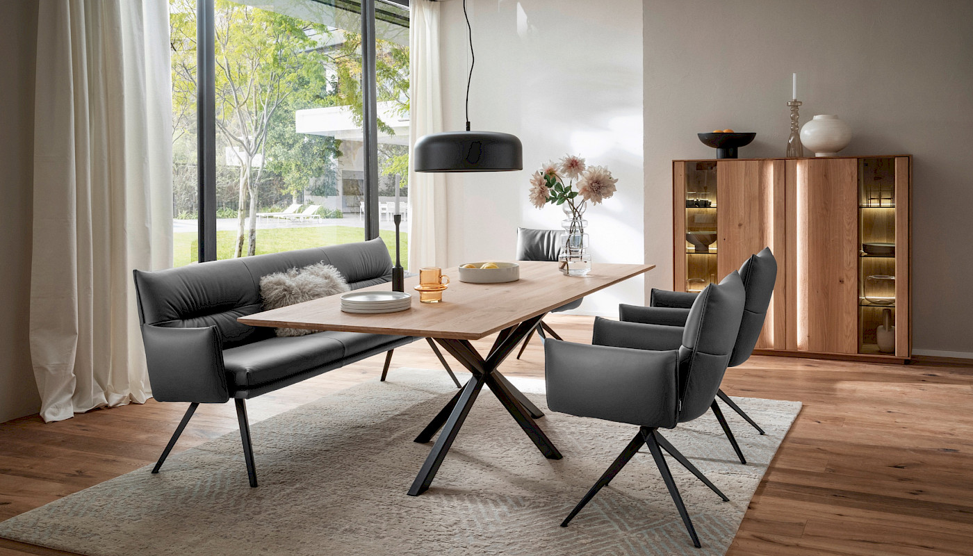 der bequeme Armlehnstuhl, entweder mit wohnlichem Holzgestell oder mit puristischem Metallgestell